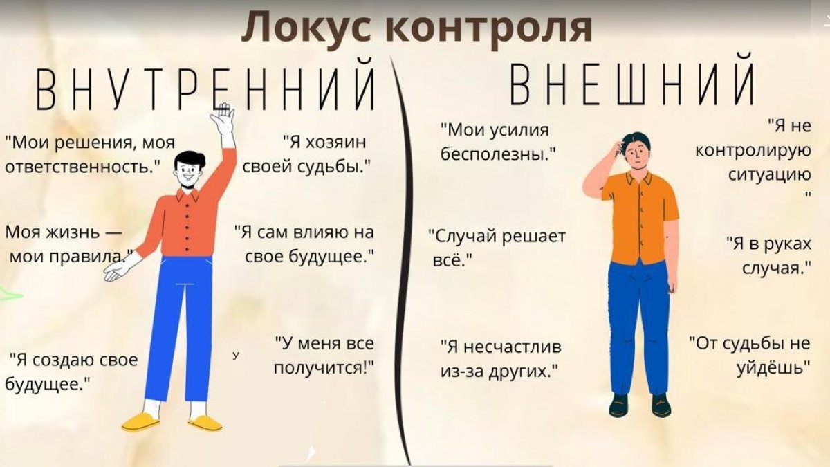 Локус контроля представляет собой концепцию, определяющую степень, в которой индивиду кажется, что он контролирует свою жизнь и происходящее вокруг. Выделяют два типа локуса контроля: