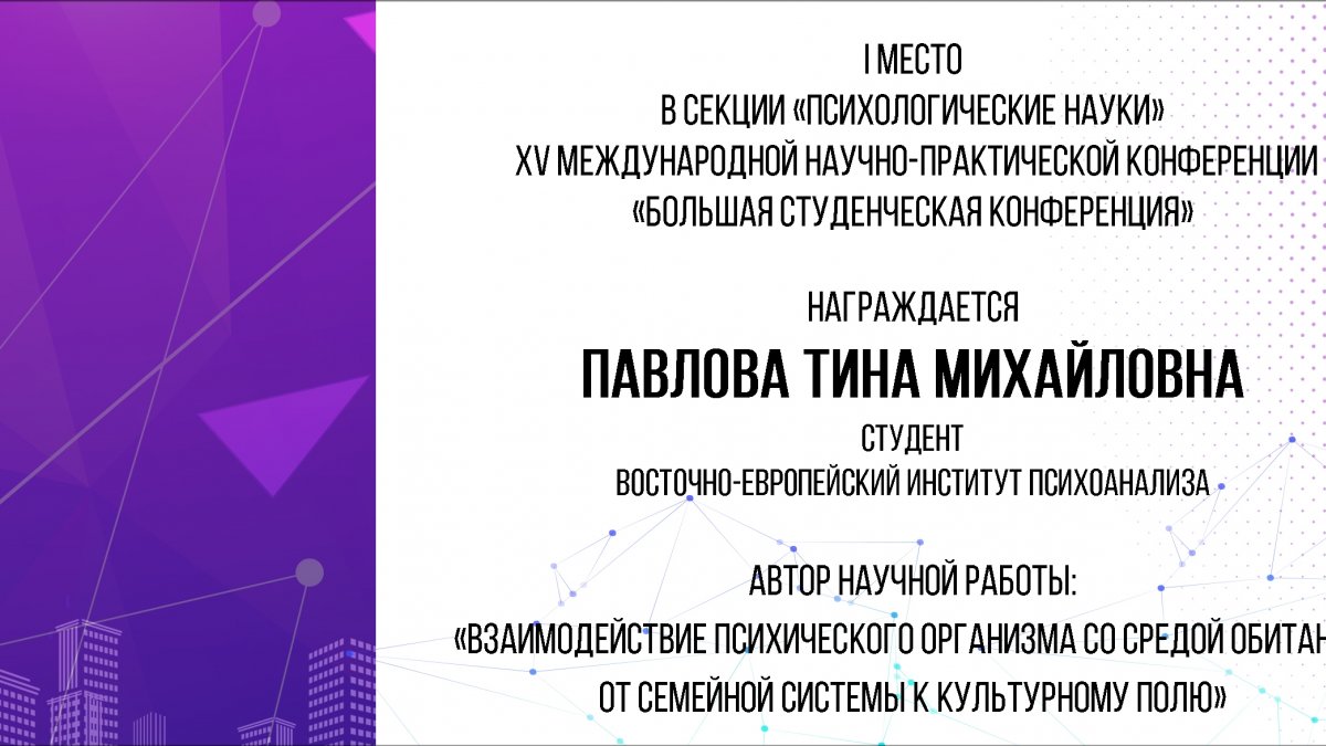Павлова Т.М. Топологическая модель процессов психического организма / Т.М. Павлова // ЛУЧШИЕ СТУДЕНЧЕСКИЕ ИССЛЕДОВАНИЯ 2025: сборник статей VI Международного научно-исследовательского конкурса. – Пенза: МЦНС "Наука и Просвещение". — 2025. – 113-117 с. ISBN 978-5-00236-876-1