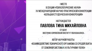 Аннотация: В статье предлагается модель психики как процесса, возникающего в пространстве взаимодействия индивидов и формирующего специфическую среду обитания — психическую реальность. Семья рассматривается как базовый "психический организм", в котором рождается и проходит адаптацию новый элемент — "ядро" (ребенок, идея, симптом). Одним из параметров, определяющим адаптацию индивида за пределами семьи, выступает разница в средах (ΔP) между внутрисемейной психической средой и более широкой культурной средой. Данная разница может субъективно