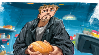 1. Обжарить на сковороде реальности. Исходная ситуация нейтральна: человек, купивший хлеб. Но сковорода уже горячая — это публичное пространство, где на тебя могут смотреть.