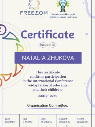 Участие в научных конференциях и других мероприятиях в области психологии, коучинга.