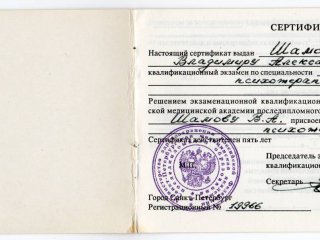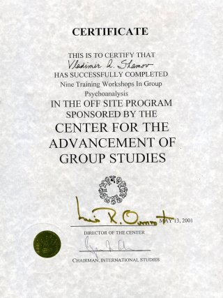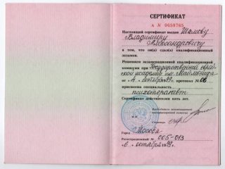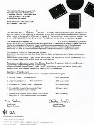 врач-психотерапевт; психоаналитически-ориентированная индивидуальная и групповая терапия. Супервизия (индив. и групповая) трениговый анализ